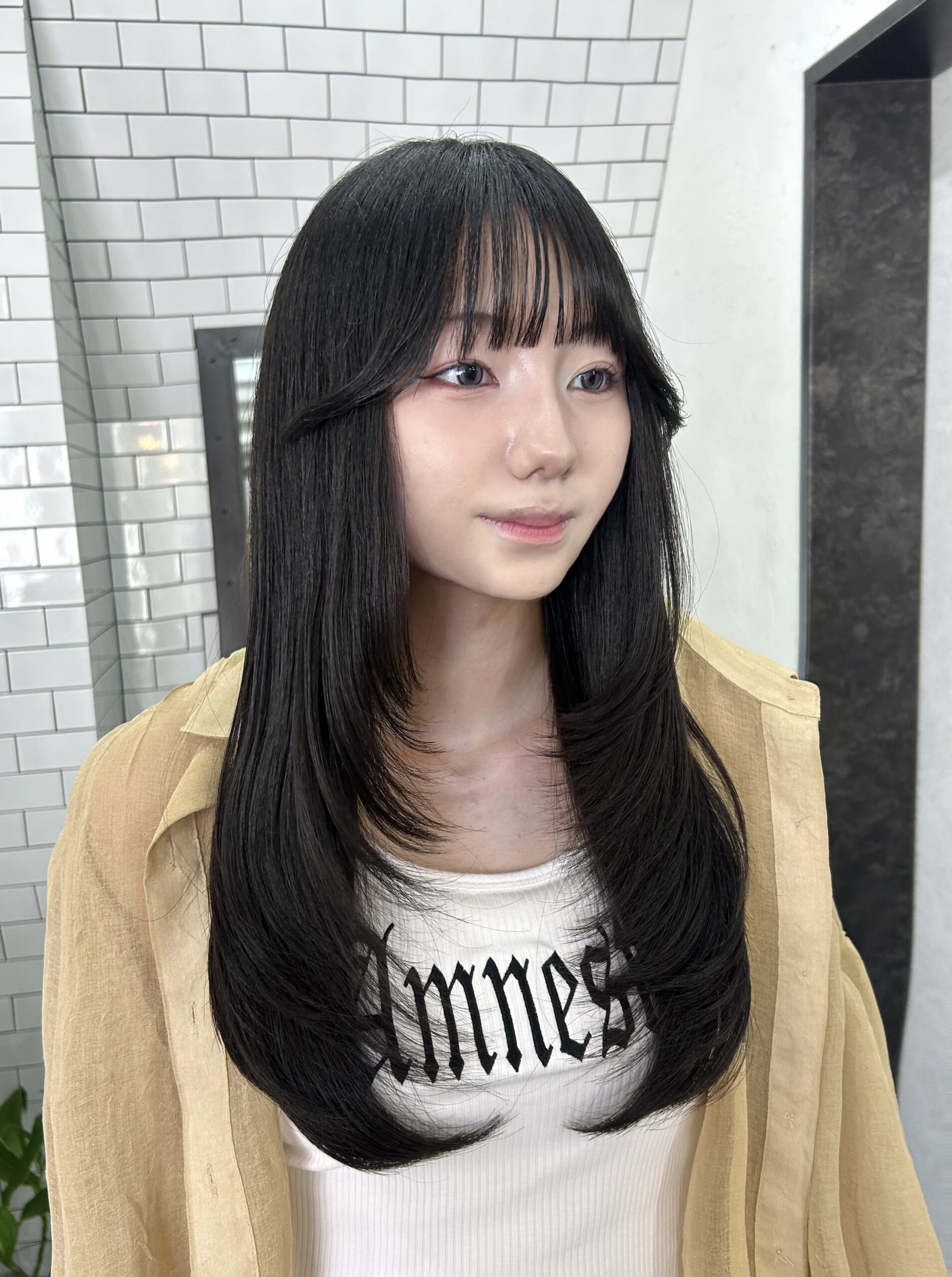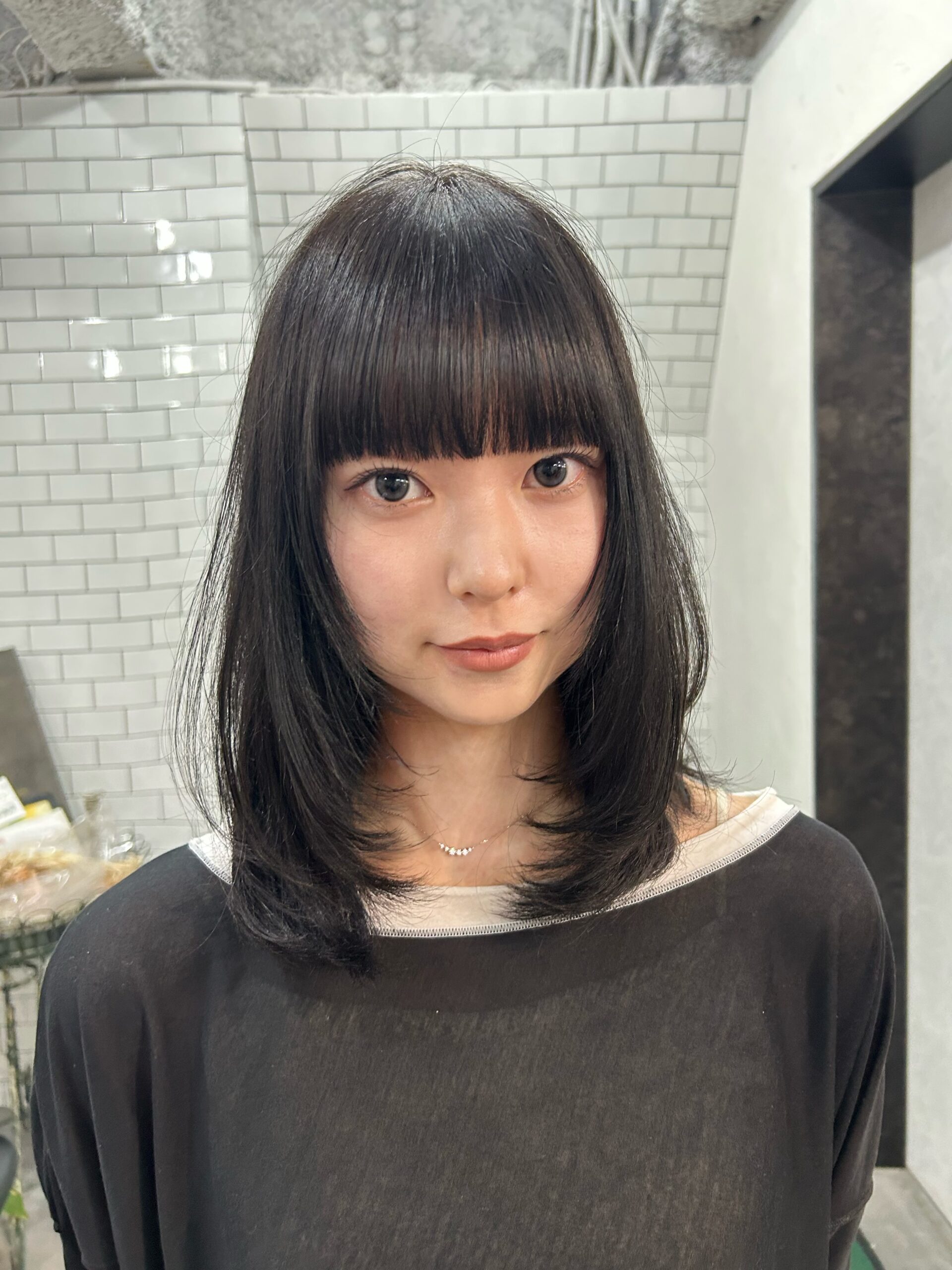 黒髪ストレートの魅力を活かした-ミディアム×姫カット